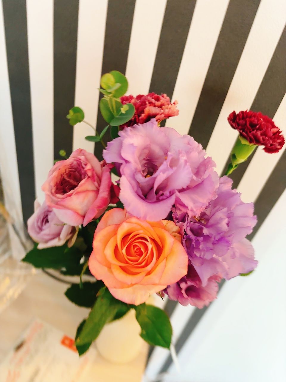 とってもかわいいお花が届きました 一つ一つの花が大きさもあり、色もとっても魅力的でした 早々にトルコ桔梗の大きな蕾が一つ落ちてしまい残念でしたが、開いている花がたくさんあってかわいさに変わりありません いつもありがとうございます😊