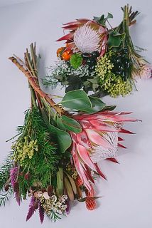 高級品のキングプロテアを主役に、秋らしいお花や小花を束ねました。