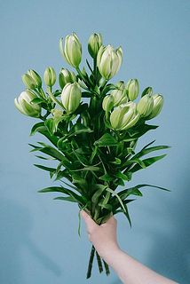 八重咲きユリは花粉が少なく上品な花姿が特徴です。緑色のユリの花言葉は「純潔」「無垢」。