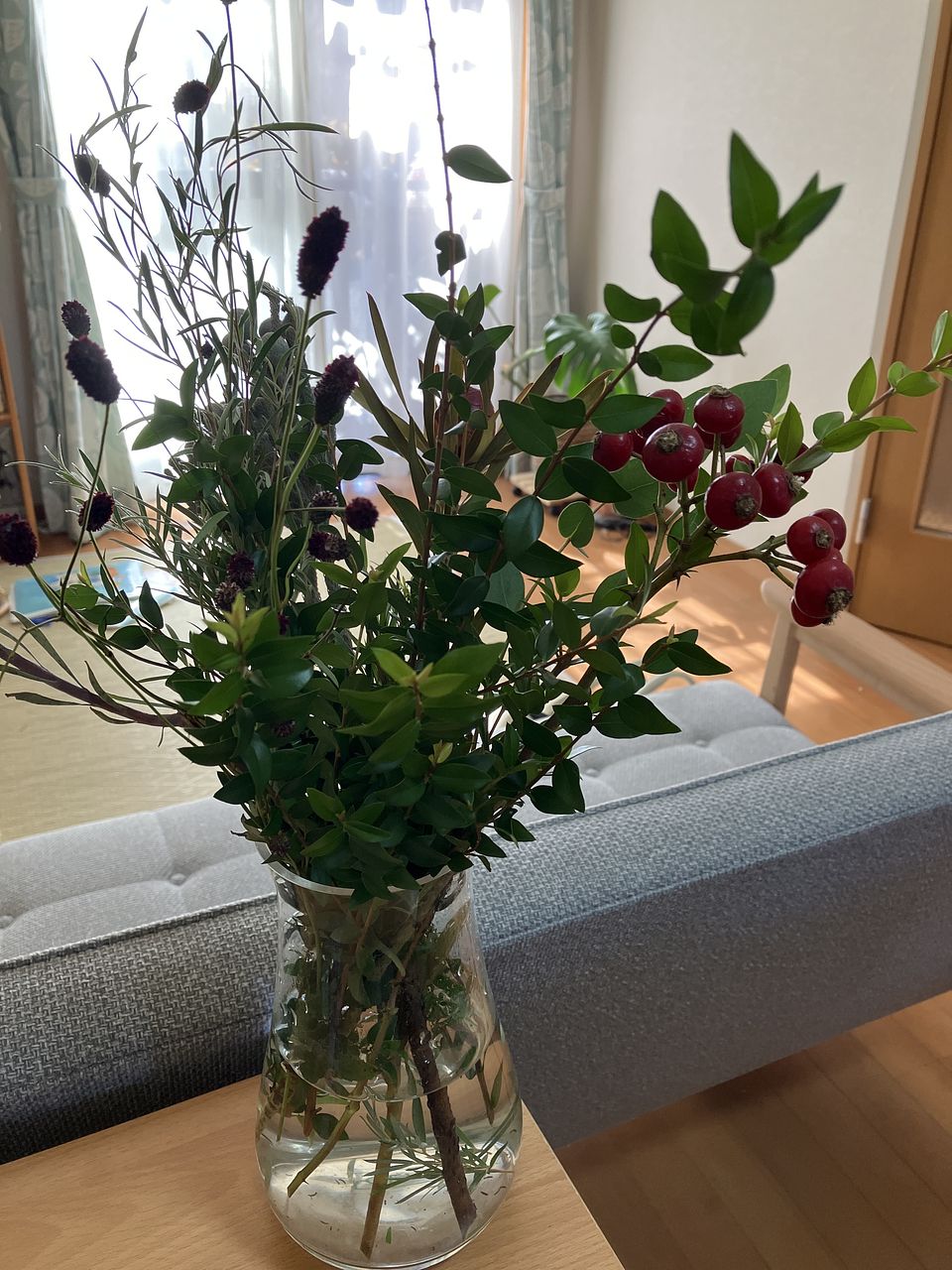 写真よりも銀香梅とワレモコウのボリュームが少ないと感じました。 ちょっとだけ残念ですが、銀香梅はとても良い香りがして癒されます。 実ものも素敵です。