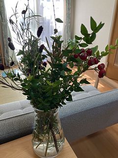 ボリュームが期待以上で用意していたフラワーベース➕短い子達だけの小さなブーケも作りました。 ユーカリの香りがとっても良いいです。しばらく楽しんだらドライにもチャレンジしてみます。