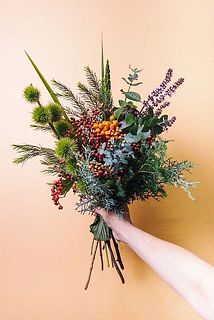フレッシュな高級グリーンと、枝や実ものをたっぷり束ねたブーケ🌳さわやかな香りはまるで森をお散歩しているような気分に🧸ハーブとしても人気のティーツリーはウッディでやさしい香り。 今の時期だけの栗を組み合わせてまるで紅葉狩りをしてる気分に。