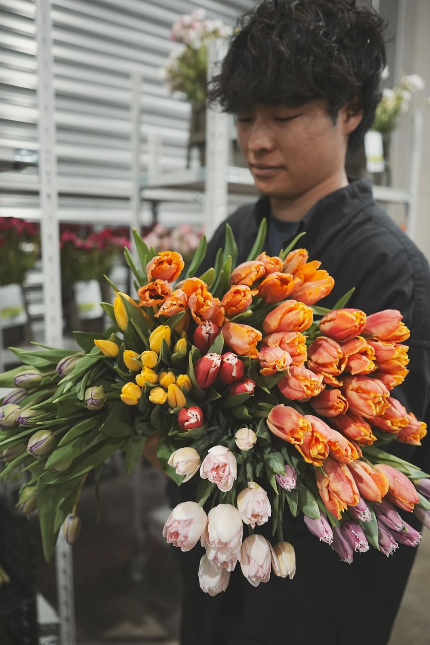 市場から直接仕入れた新鮮な花をオンラインで数量限定販売。FLOWER独自の販売方式で、花の廃棄を限りなく0に。ロスがないから、ずっとお得な価格でのお届けを実現しています。