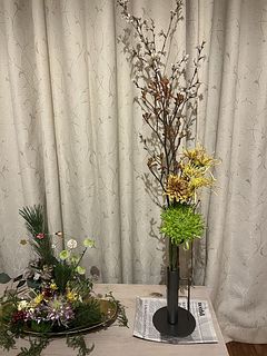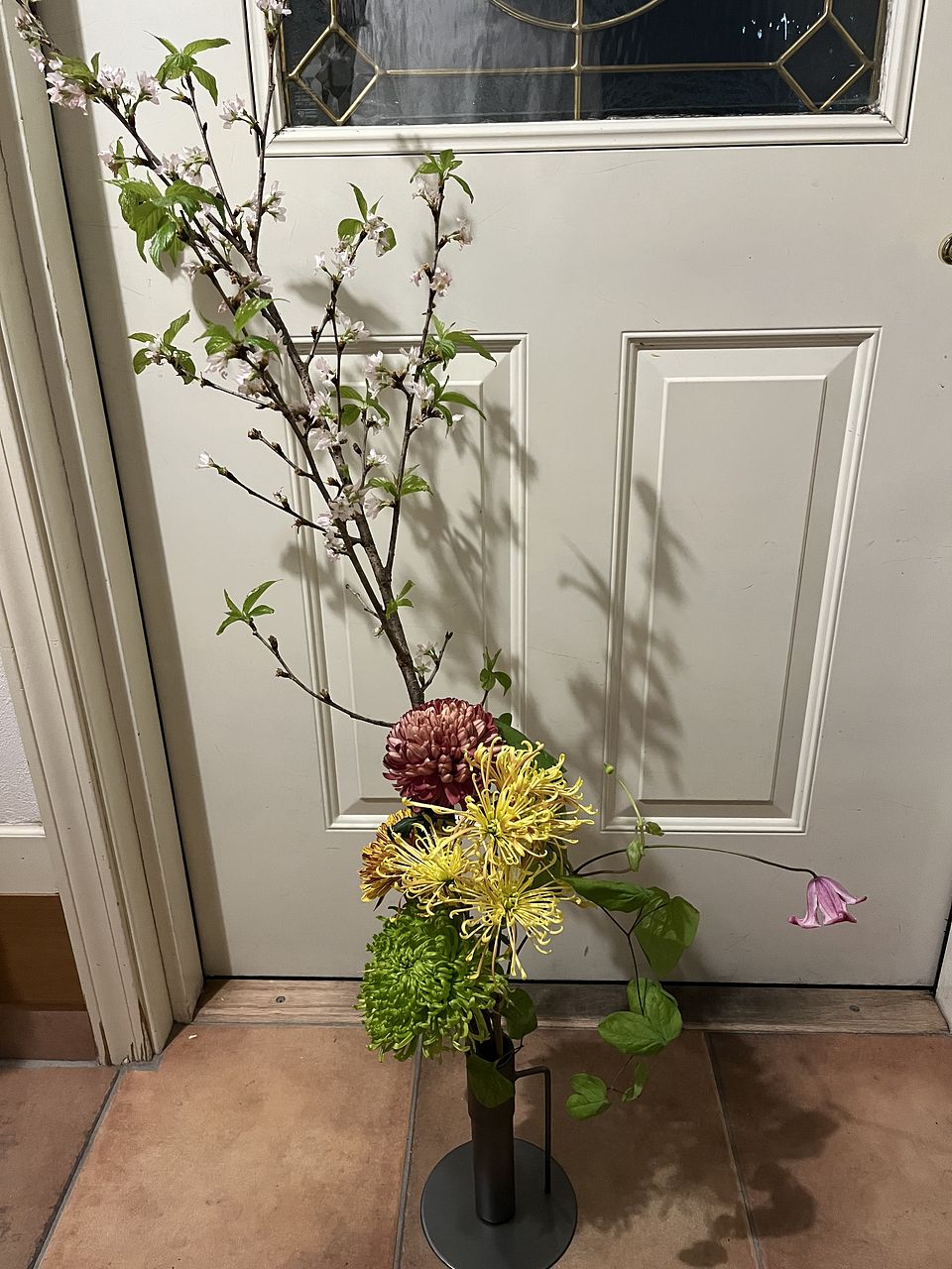 丈の長い花材を数本入れるだけでセンスのない私でも素敵に生けられました😍