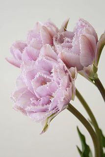 淡いピンクパープルの花びらは、光にあたると透き通る繊細な美しさ。華やかな八重咲きに加え、ギザギザのフリンジ咲きでもある、かわいすぎるチューリップなんです😍