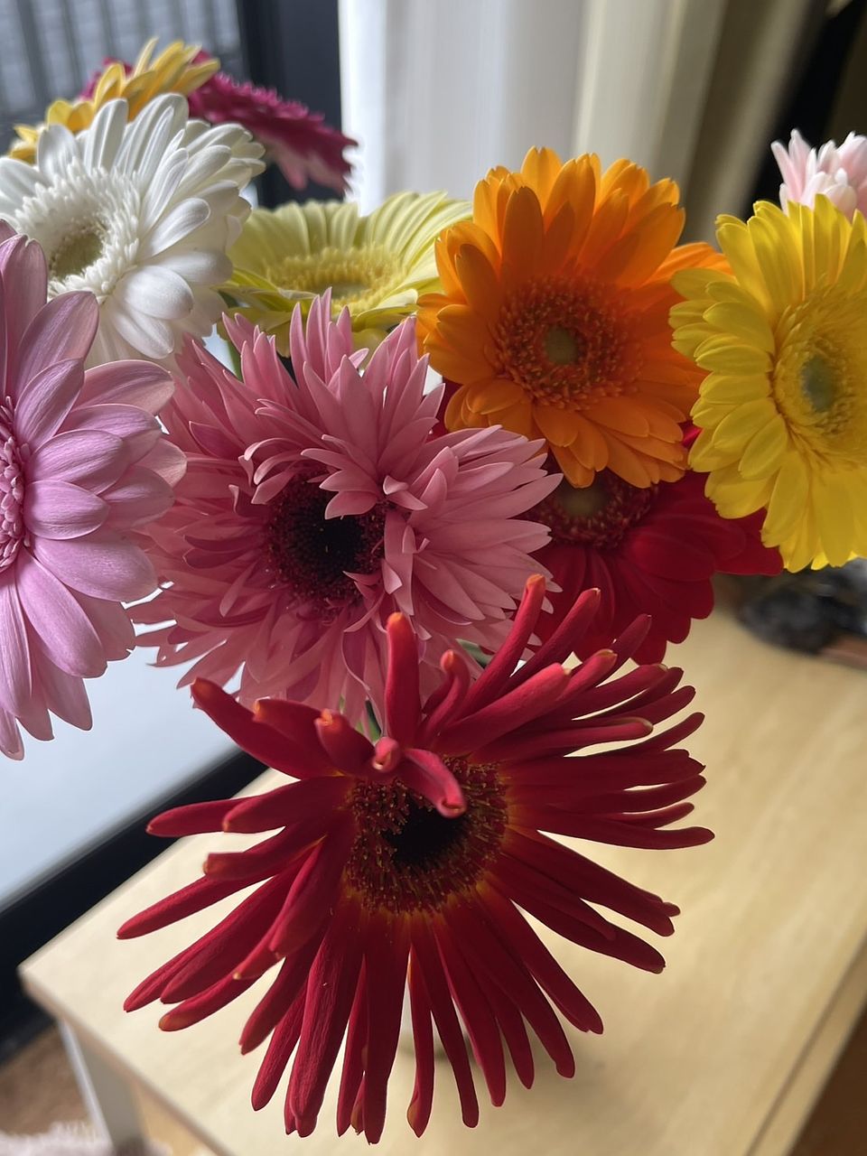 つんつんとした花びらが魅力の「イギー」は松木さんイチ推しのガーベラ。他にも、 花びらの面がクリーム、裏がピンク...かわいすぎる「パスティーニぺサロ」や、グラデーションが美しい「サララ」など、おしゃれな品種がたくさん😍どんな組み合わせで届くかはお楽しみ。