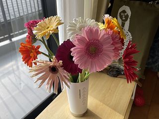 自分の不注意で配送当日に受け取れず、翌日の午前中に受け取りました。ほぼ全てのお花がしょんぼりしていて急いで茎の下をお水の中で2センチ切って水揚げは花首ギリギリまでお水の中に入るようにしました。首が安定しなかったので新聞紙で頭をまっすぐ上に向けて巻いて10時間くらい水揚げしました(こんなに長時間いいのかわかりませんが😅)