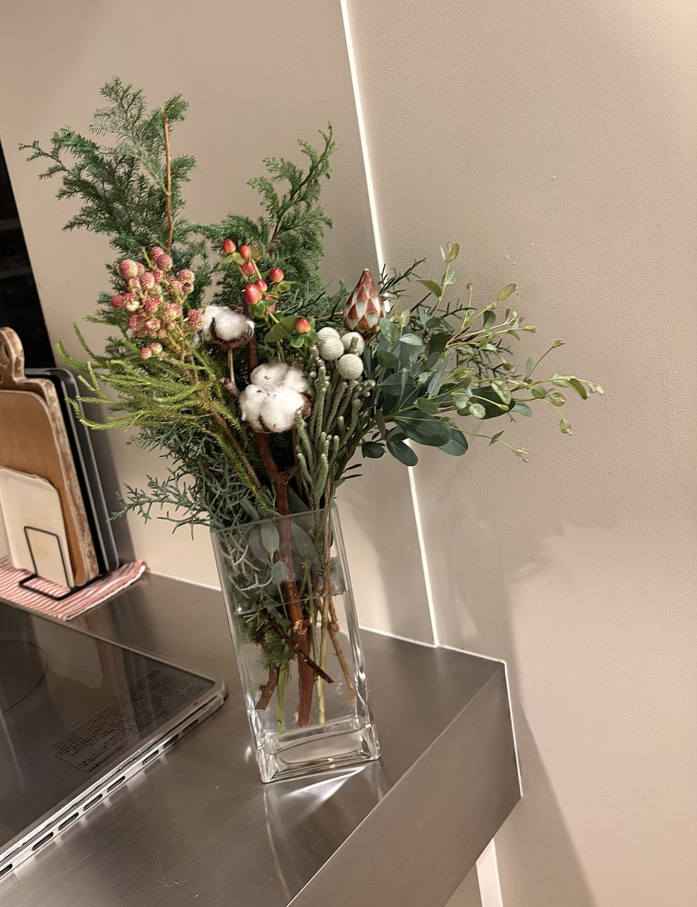 ボリュームも思ったよりあり花瓶に生けたら一気にクリスマスムードになりました