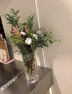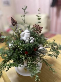 箱から出した時に良い香りが立ち込めて癒されました。初めて購入したので、どう飾ったら良いのか何が正しいのかわからないまま生けましたが、何とかクリスマスっぽくできたかな? 葉っぱが良い香りだったので、束ねてトイレに飾りました。 年末年始このまま楽しみたいと思います。 素敵なクリスマスになりそうです😊