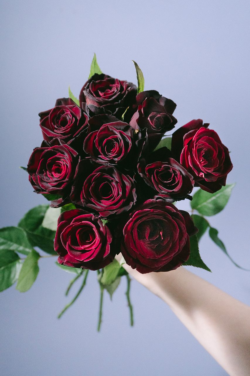 染料で染めているため、茎先が紫色になっています。お水もだんだんと紫色に変化しますが、品質は問題ありませんのでご安心を。