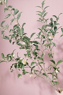 緑茶や紅茶の茶葉として使われていますが、観賞用としても茶道で使われるなど古くから日本人に馴染みのある、つやつやの葉が美しいツバキ科のお花です。長さを生かしてダイナミックに飾ってみて。