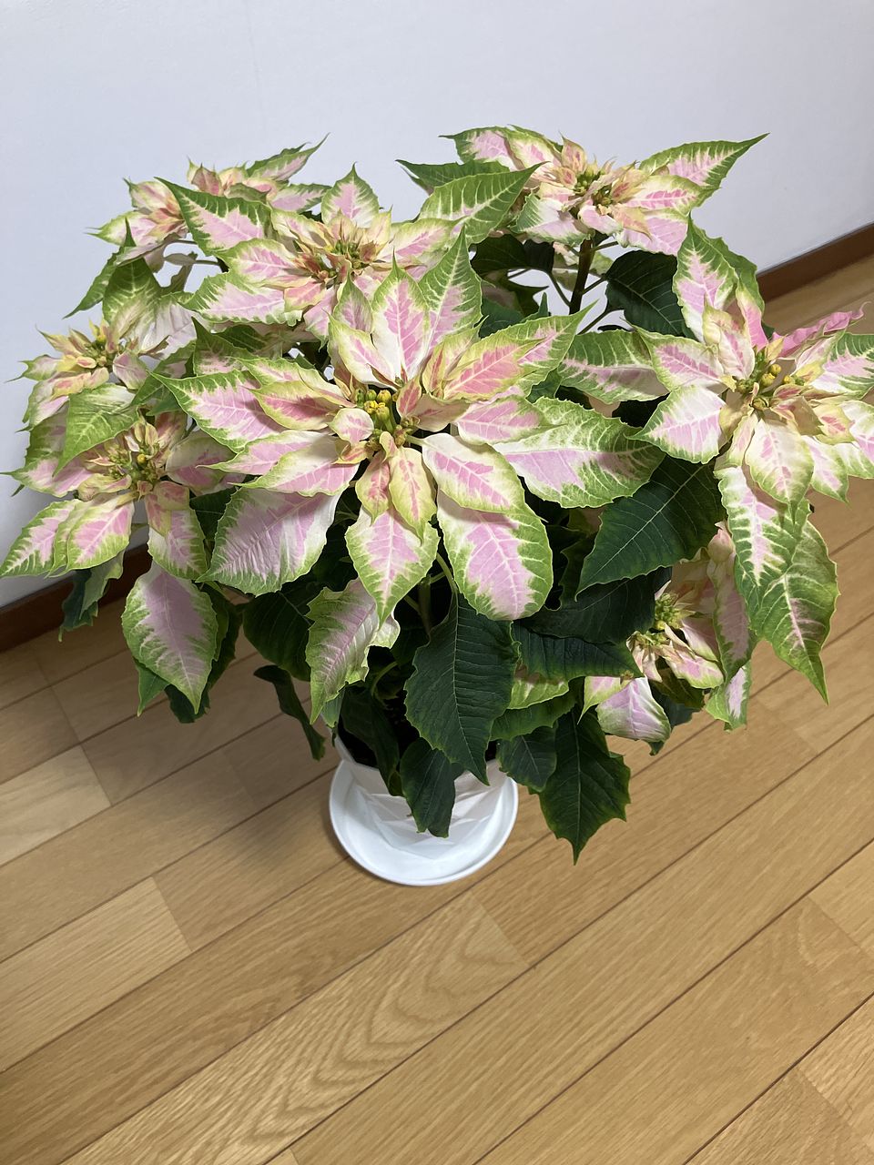 ボリュームがあり、この価格で可愛らしいピンクのポインセチアに満足しました。色は見本画像より黄緑色が多かったですが、許容範囲。こんな色のポインセチアを今年の冬は飾れてよかった!水はあまりあげなくてよいと書いてありましたが、しばらくして枯れかけてしまい、急いでたっぷりと水を鉢につけたら生き返りました!