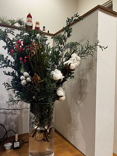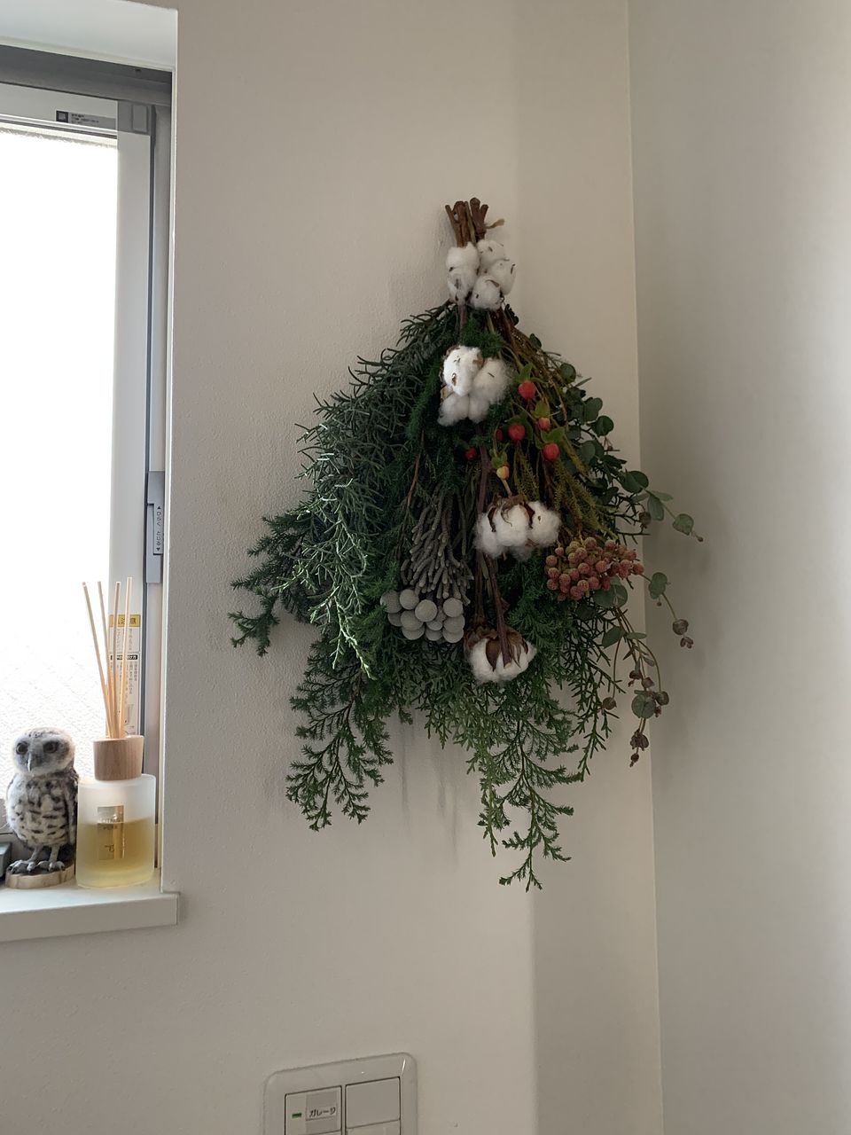 箱から出した時に良い香りが立ち込めて癒されました。初めて購入したので、どう飾ったら良いのか何が正しいのかわからないまま生けましたが、何とかクリスマスっぽくできたかな? 葉っぱが良い香りだったので、束ねてトイレに飾りました。 年末年始このまま楽しみたいと思います。 素敵なクリスマスになりそうです😊
