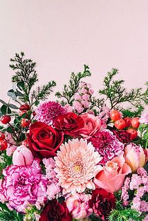 この冬に楽しみたい!心がときめく赤とピンク色のブーケ🍷どんなお花が届くかは、箱を開けるまでのお楽しみ。