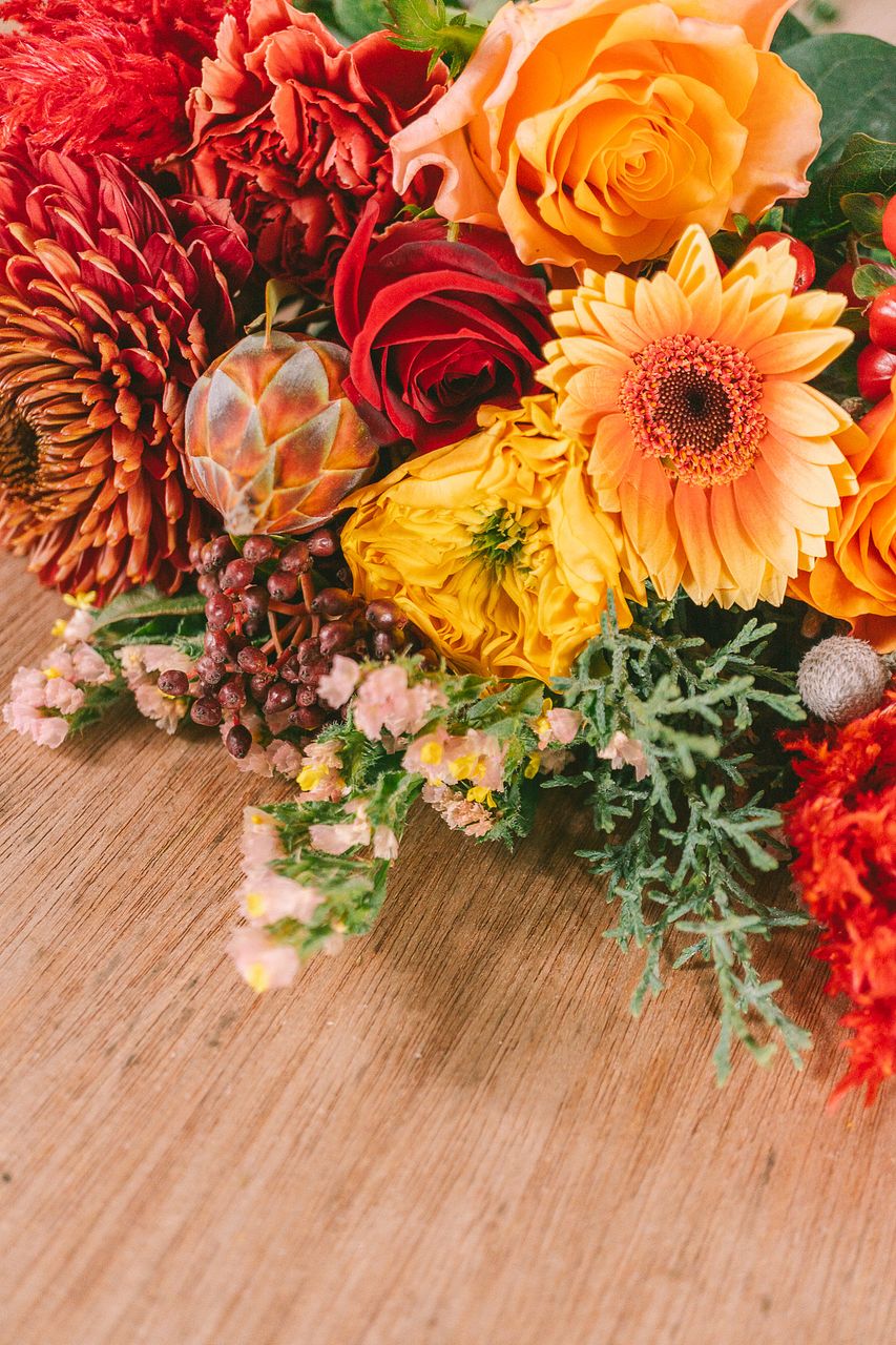 リューカデンドロンや、つやつやの赤いヒペリカムの実、雪のようなスターチスがポイントに💫クリスマス気分を盛り上げます🎁