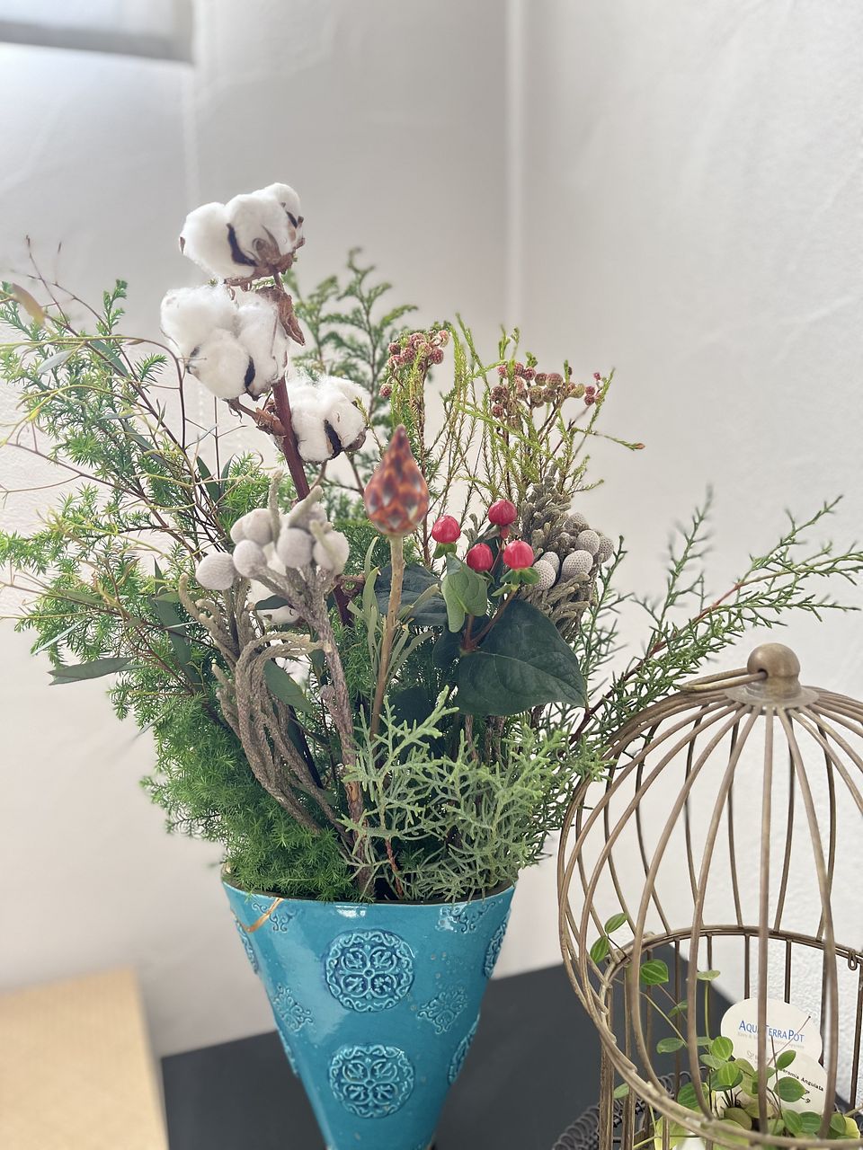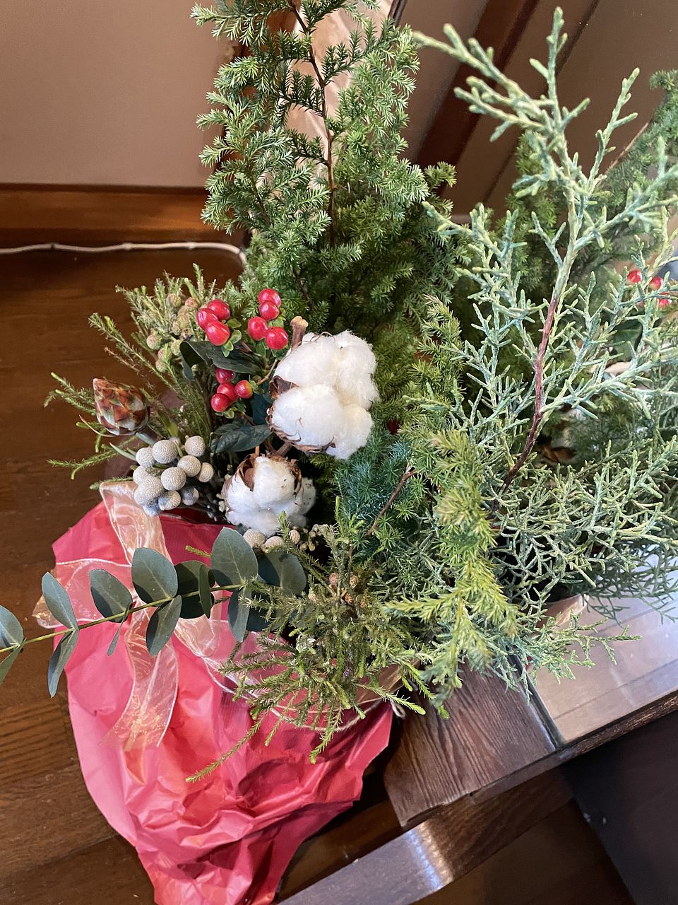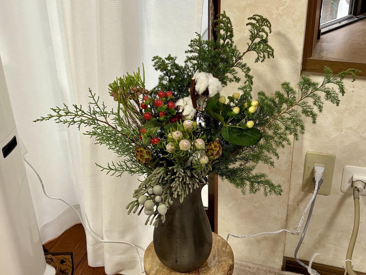 思ってた以上にボリュームがあって可愛いクリスマスのお花でした。次はお正月用を探してます