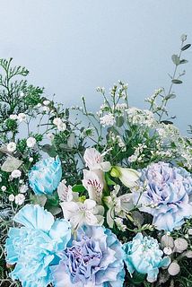 ひんやりかわいいブルーとホワイトのお花を集めたおまかせブーケ⛄️どんなお花が届くかは、箱を開けるまでのお楽しみ。