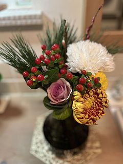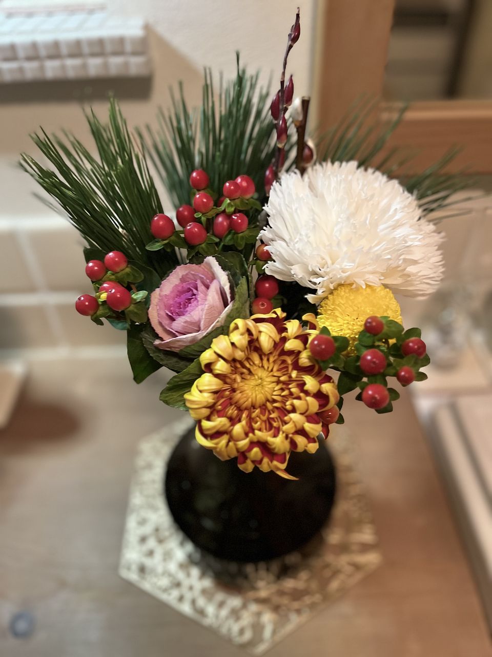 大人気のお正月ブーケ❣️ 大輪のマムやハボタン、松、千両などお正月にぴったりな縁起の良いお花を集めました🎍新しい年をお祝いのお花と一緒に迎えませんか?🧧