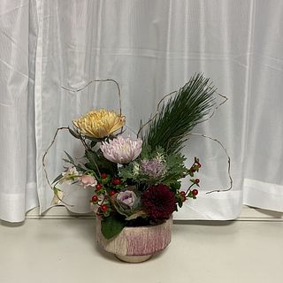 可愛らしくもお正月らしい上品な花と色の組み合わせで大満足でした。今まではそばに花屋が無いので、スーパーの切り花を合わせていましたが、届けてもらえるのは本当に助かります。また利用させて頂こうと思っています。