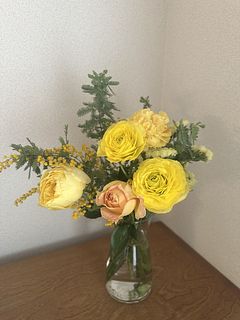 カップ咲きがかわいい希少なバラ「ひよこ」をメインのブーケはいかが?🐣