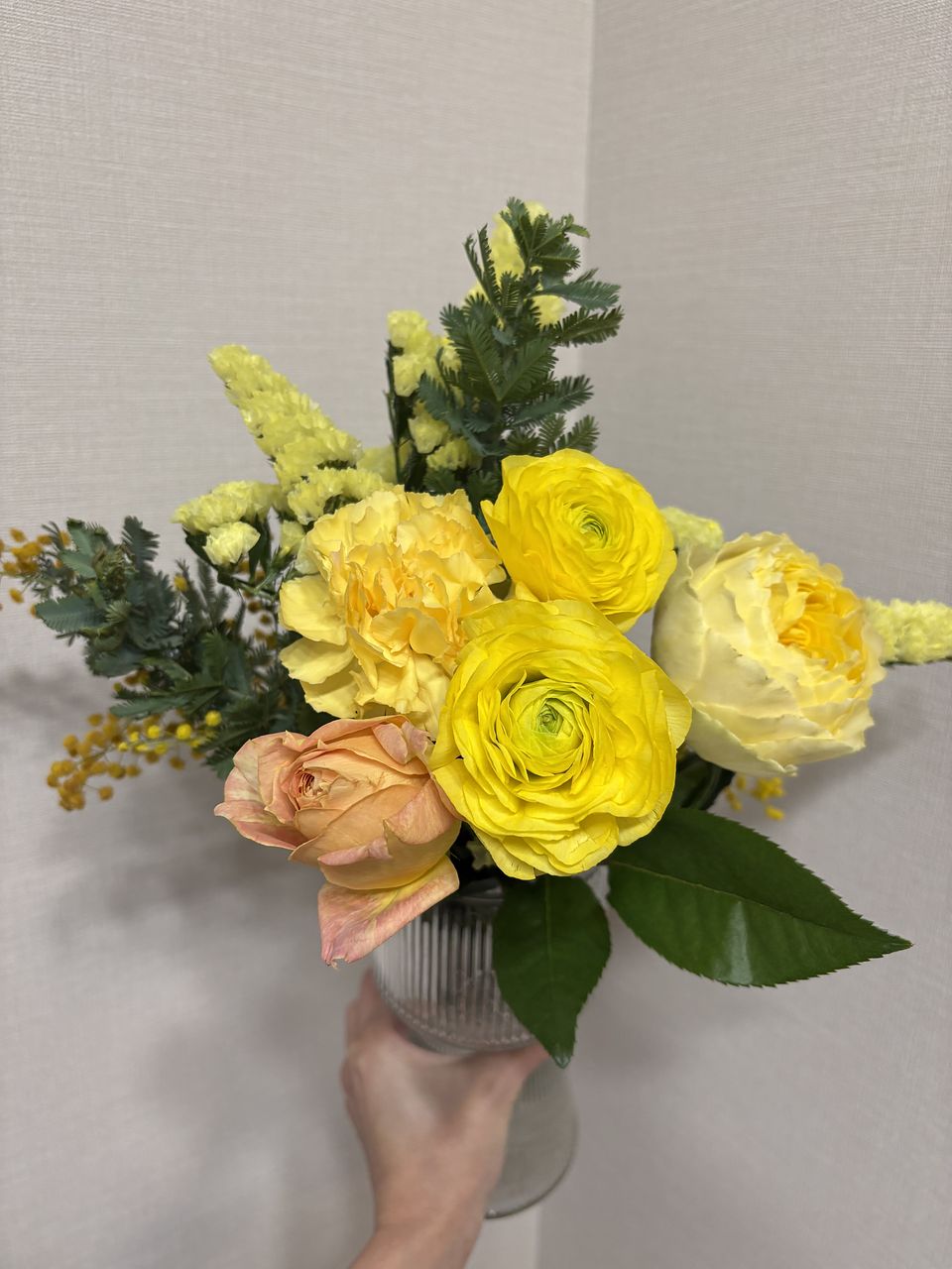 思った通りのお花が届いました🌼ミモザの丈がちょっと短かったのが少し残念でした。