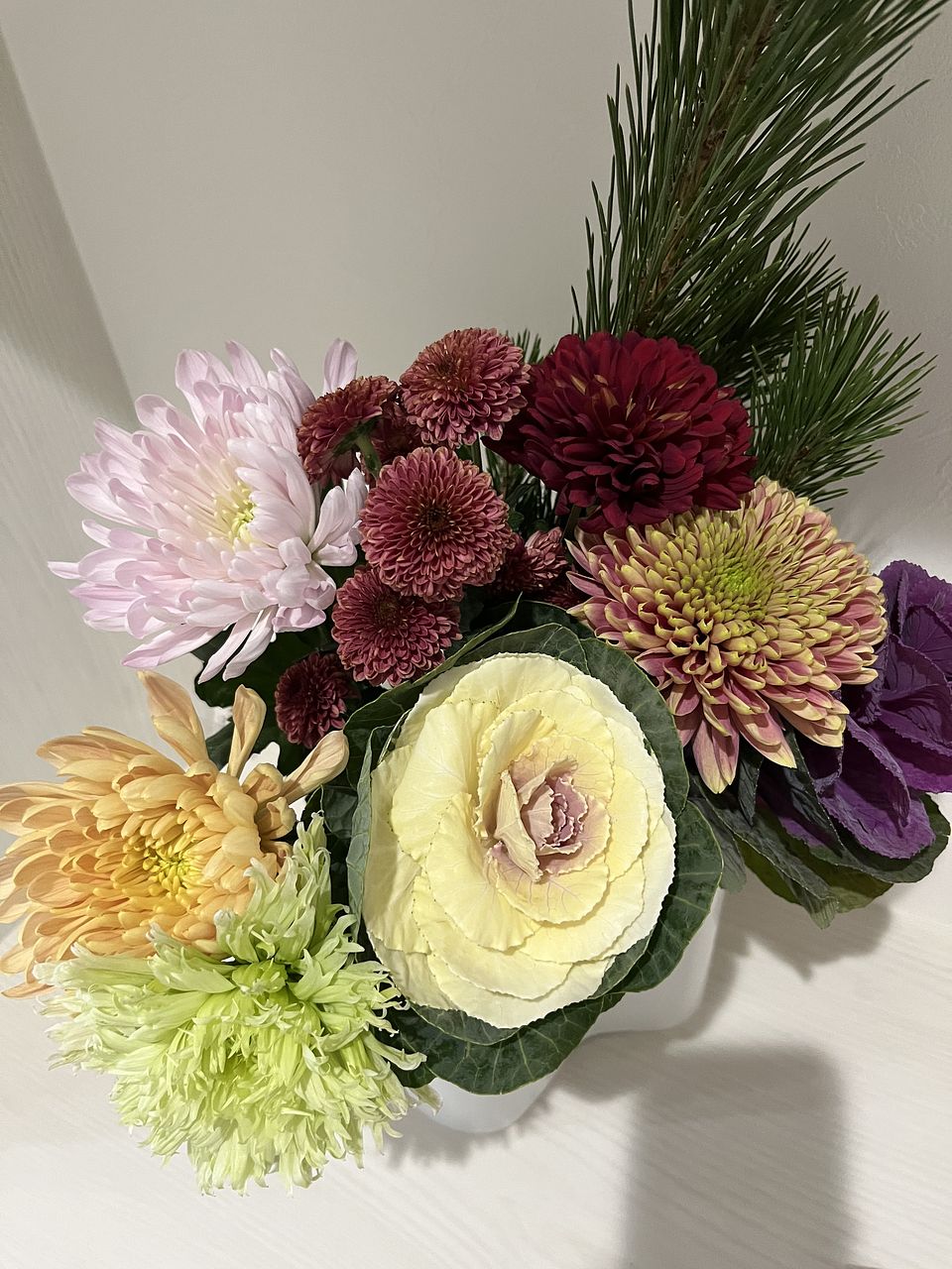 旬のマムをお届け💐お供えのイメージが強いマムですが、デコラ咲きやポンポン咲きなど、さまざまな咲き方や色合いがあります。花保ちの良さはダントツ。長く楽しめるお花です。どんな品種が届くかは箱を開けるまでのお楽しみ。