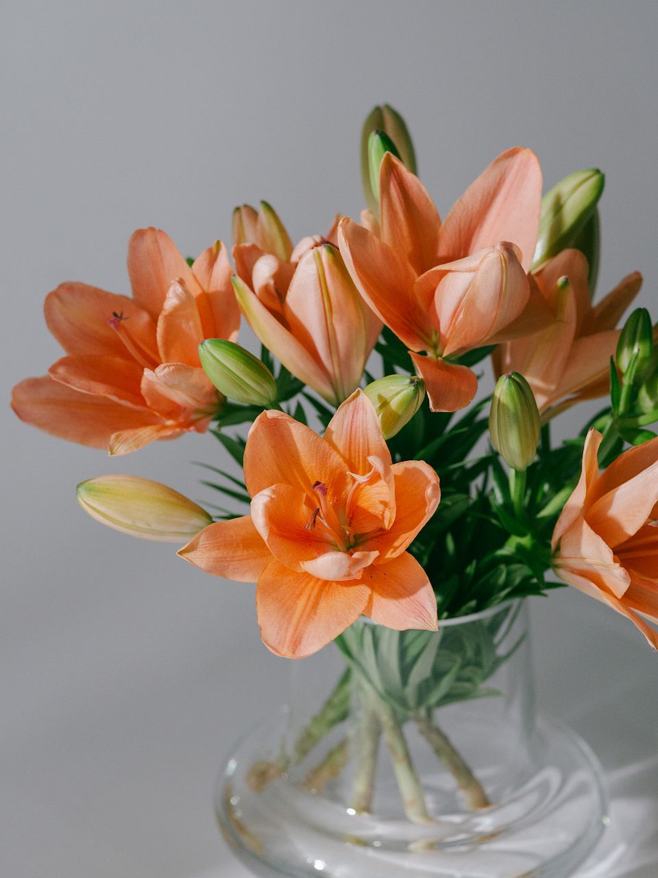 - ボリュームはお花とグリーン合わせて8〜10本前後