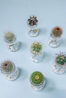 かわいいちびサボテンと水耕栽培用のガラスベースとセットでお届け🌵