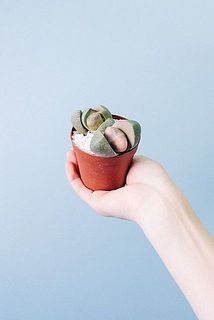 丸みのある多肉質な葉の間から新芽がでる不思議な草姿のです。