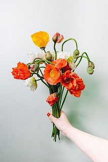 ポピーは俯きがち。紙に巻いて水揚げを行ってみて。