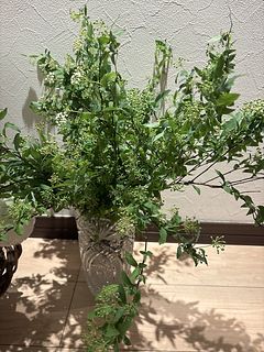雪の降る日に雪のような花が届きました😌 コデマリは、まだつぼみの部分が少しづつ咲いていく楽しみがありますよね😊 ボリューム満点で大満足です✨
