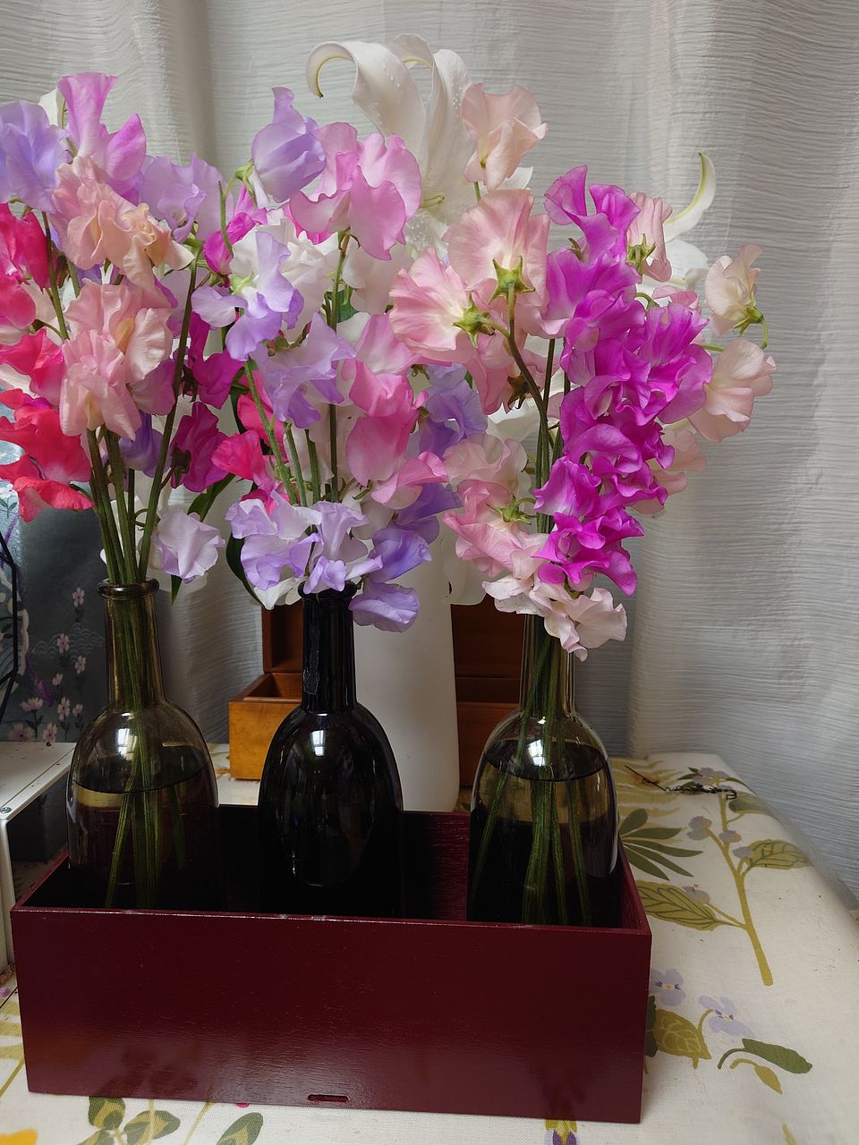 まだ前回のお花が咲いてるのですが、スイートピーの香りが好きで、たく さん入っててお得なので注文しました!色合いも香りもとても素敵です✨️