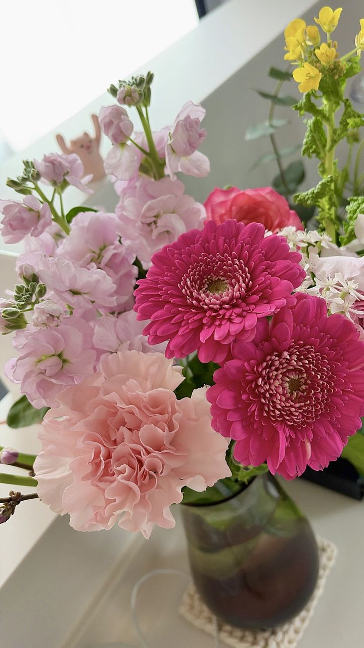 ボリュームもあって濃淡のピンクが可愛かったです。 すでに一週間以上経ちますがまだストックやカーネーション、ガーベラ ラナンキュラスは元気に咲いています。
