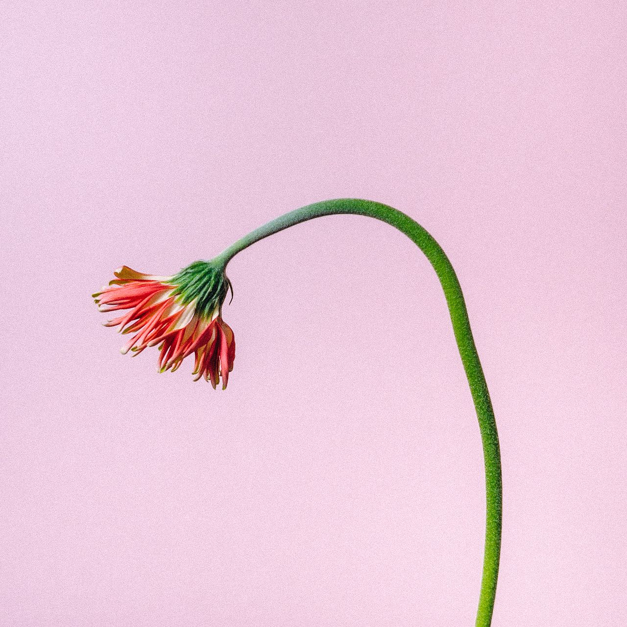 ガーベラは茎が曲がっている場合も。個体差のため、品質には問題ありません。