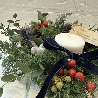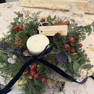 新鮮なスワッグ花束届きました。クリスマスリースを作りました。バランス良い組み合わせで楽しめましたꕤ…˖*