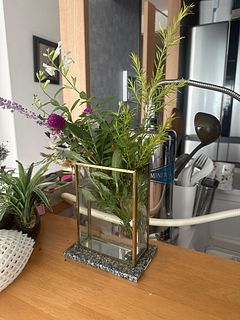 四角の花瓶は初めて使います どう生けてもいい具合になる気がします おしゃれで気に入りました