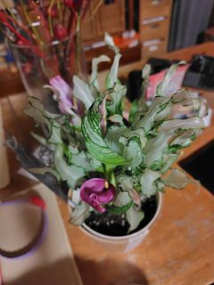 透明感のある斑入りの葉と花のコントラストにうっとり😍希少種カラー「フローズンクイーン」❄️👑