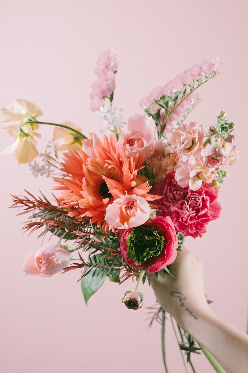 コーラルやレッド、ピンクのお花をチョイスしてお届けします💐