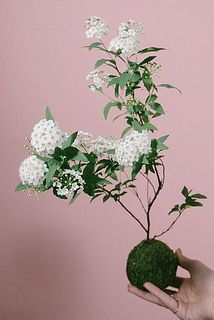 苔玉に仕立ててお届け。お花が重く安定感はありませんので器のご用意をお願いします。