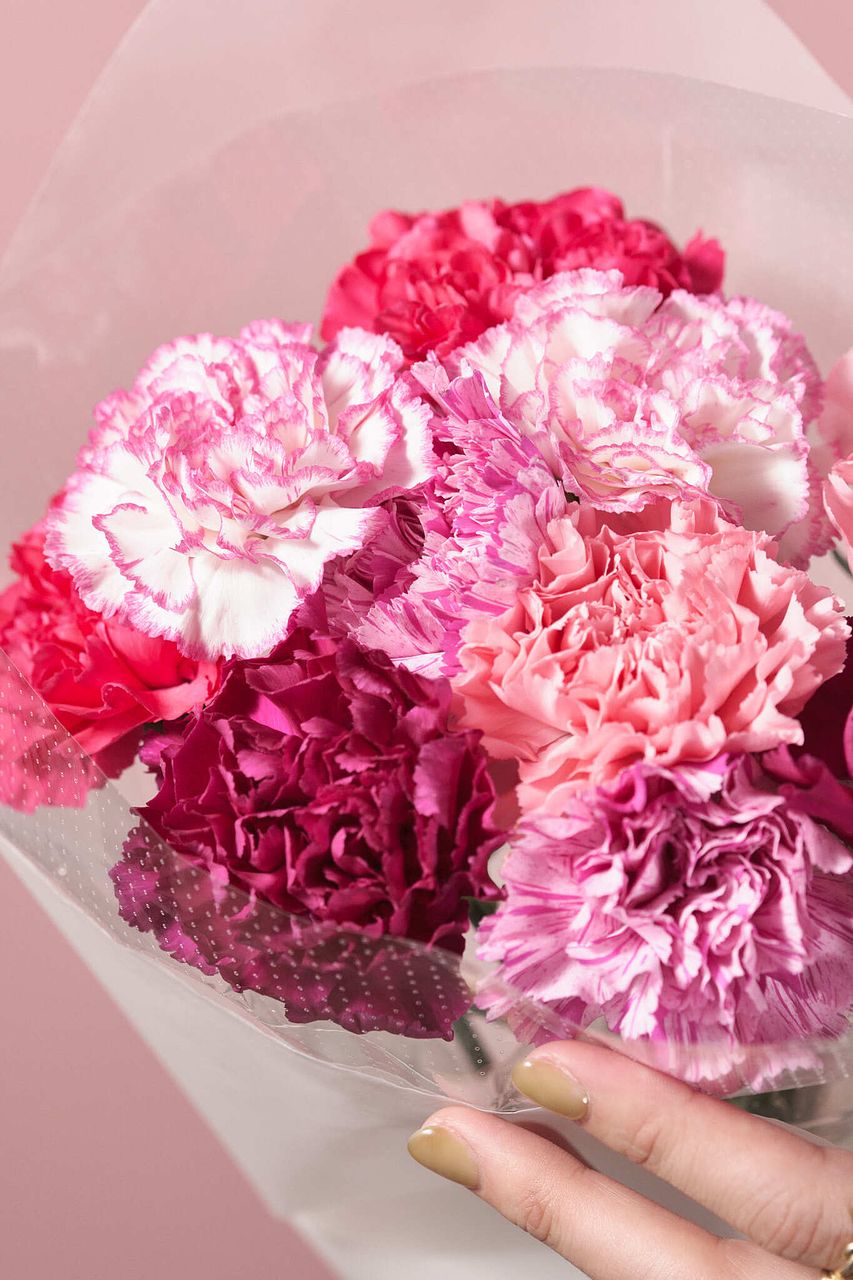 ラブリーなピンクのカーネーションの花言葉は「感謝」。かわいい雰囲気が好きなお母さんに。