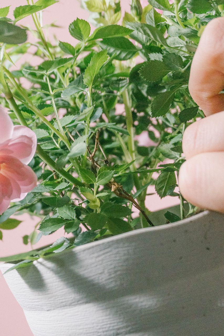 一部、咲き終わりや日の当たらない部分は枯れている場合がございます。優しく摘み取ってあげましょう。