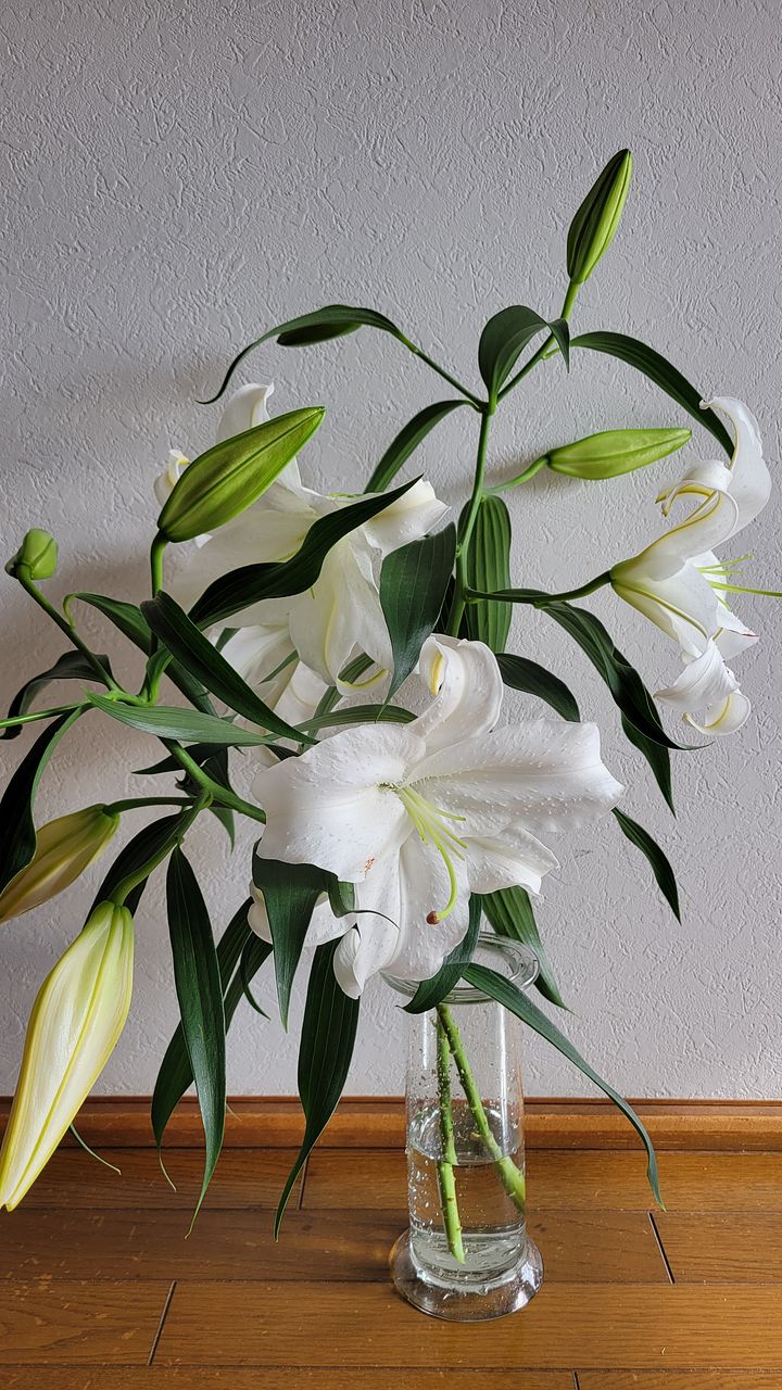 とても立派な百合でした。水揚げが成功したようで、次々と咲いています。香りもとても良いです。購入できて、本当にラッキーでした。