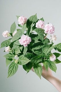 可愛らしい雰囲気で小さな手鞠状の花は白~薄いピンクへと変化していきます。