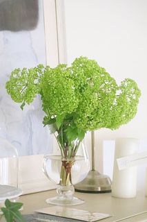 思っていたより全体的に下に垂れ下がったままの花束だったので、初心者の自分にとっては花瓶に良いポジションでバランス良く飾るのが少し難しいと感じました。 色は鮮やかな緑と黄緑で、とても好みで素敵でした。