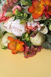 ホワイトピオニーを主役に、フレッシュなブーケをお届けします。さわやかなブーケが好きなあなたに。