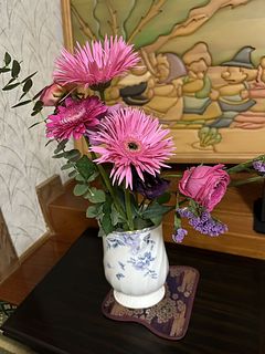 おまかせのブーケ💐とても可愛かったです💐 配達日が都合悪く受け取れず、1日遅れて受け取ったので心配でしたが…傷んでいるのもは1個もなく✨️新鮮で水揚げしたらみんな元気になりました✨ ビビットピンク💐🎀可愛いです🩷 2つまとめて飾っています💐 (∩´∀`∩)💕 写真は届いた直後と、届いて3日目の写真です💐