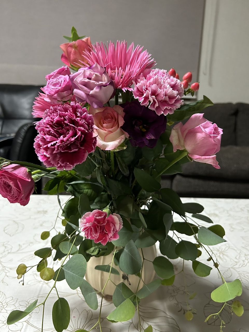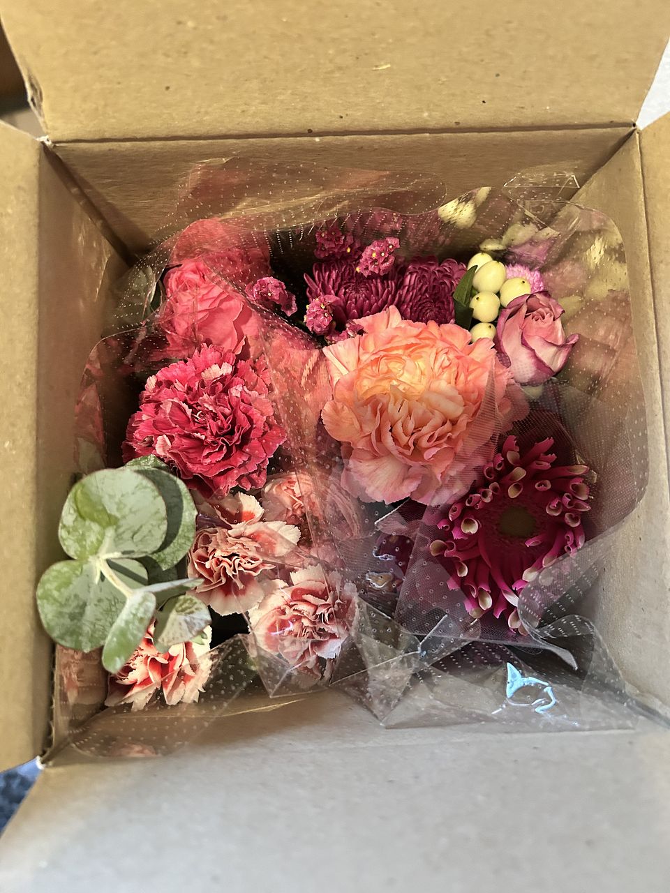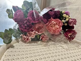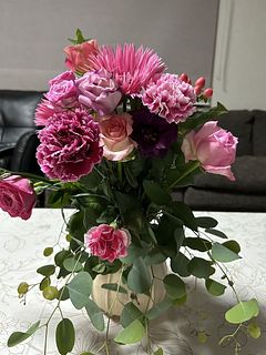 とても素敵なブーケでした! ほのかに香る薔薇、秋らしい可愛らしいピンクの花々に感動しました。 ひとつはテーブル花に、ひとつは母の供花にしました。お花をこよなく愛していた母も喜んでいると思います。こんな素敵なブーケが安価で購入できるなんて最高です❣️