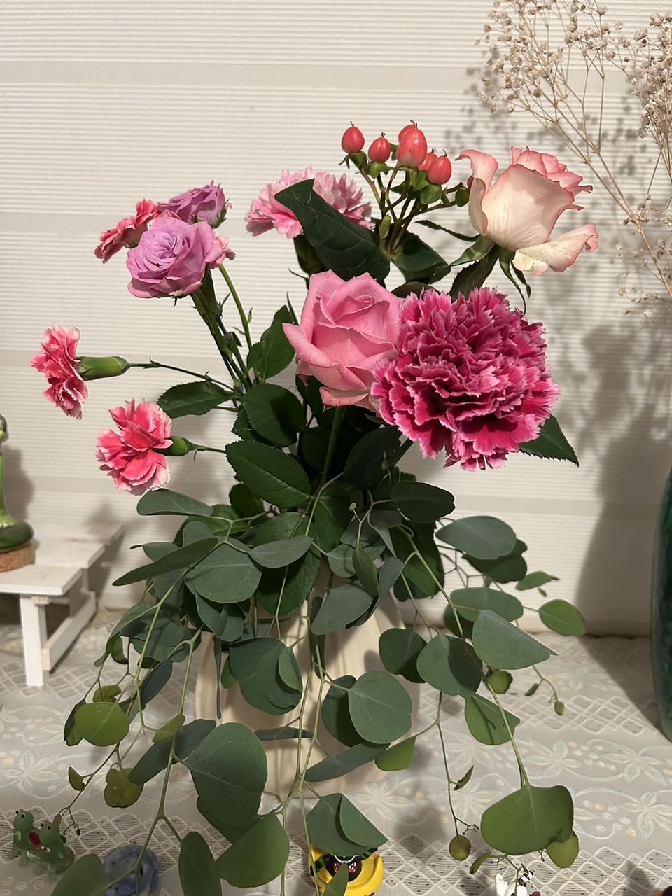 色んな種類のお花が入っていて、大きめに飾ったり、小さく可愛く飾ってたり楽しめた。