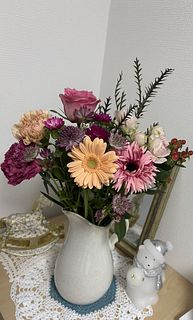 カーネーションやスプレーバラ2色、ガーベラ、トルコキキョウ❣️どれも大好きなお花です。ボリュームの2束は豪華です。 お花のある生活は贅沢ですがときめきます。 素敵なブーケをありがとうございました。