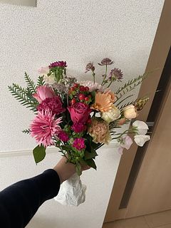 届いて驚いたのは、写真通りのボリュームと色合い❤️価格以上の満足です♪次に注文したいブーケを選ぶのがたのしいです😊